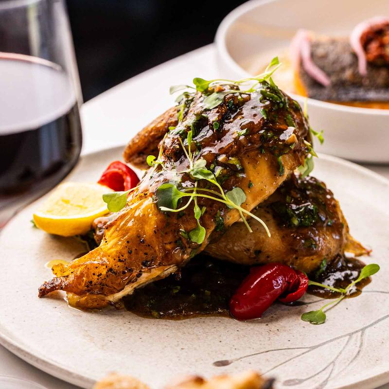 Herb roasted, Texas hot honey, pecan gremolata.
