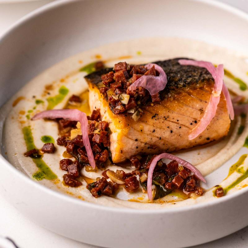 Whipped egg yolk, crispy chorizo, candied jalapeno, pickled red onion.