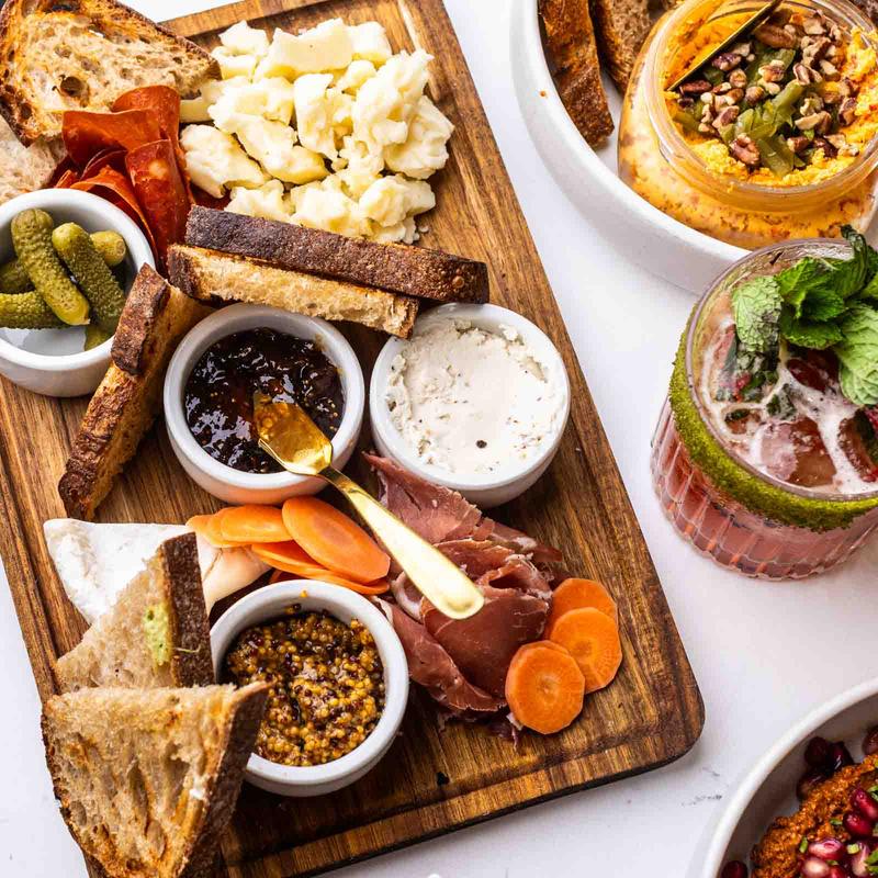 Adagio Salumi artisan-cured meats, local artisan cheeses, house-made jams, mustards, pickled Texas vegetables, sourdough.