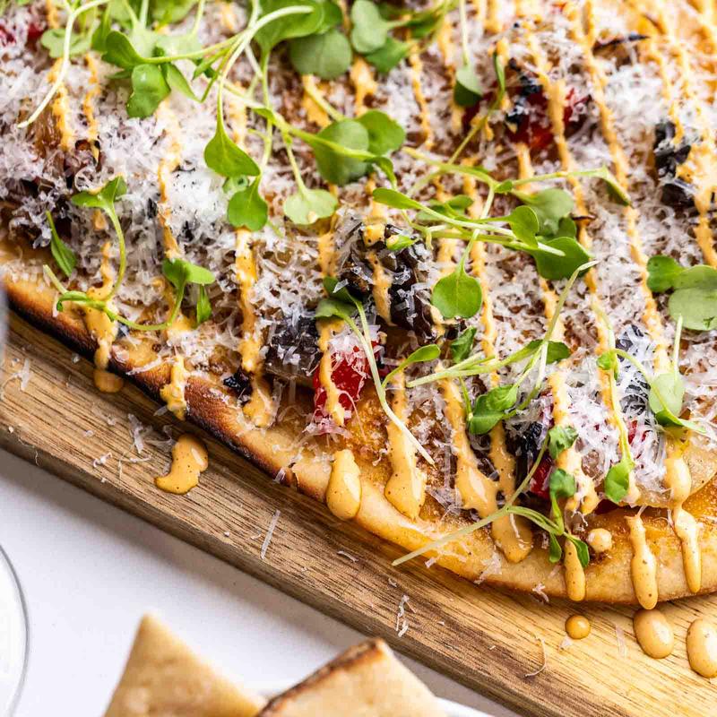 44 farms red wine braised beef short rib, roasted garlic atoll, caramelized onion, pickled jalapeno, manchego.
