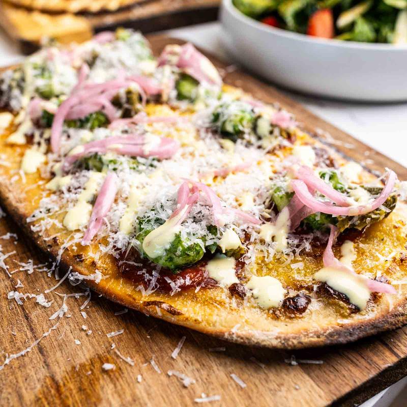 Tomato jam, peppadew, local arugula, pickled red onion, Texas pesto.