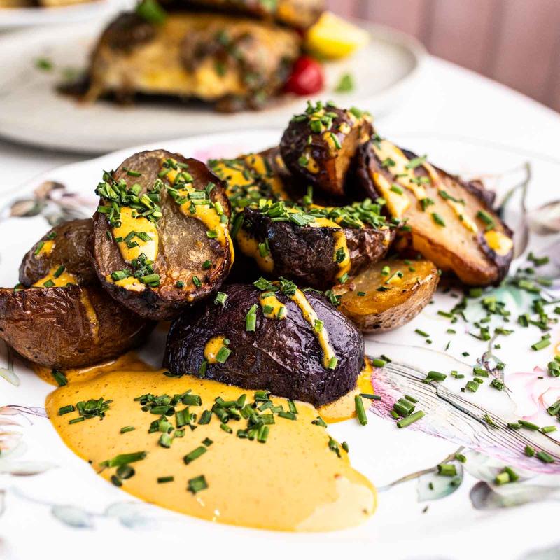 Roasted baby potatoes, paprika aioli.